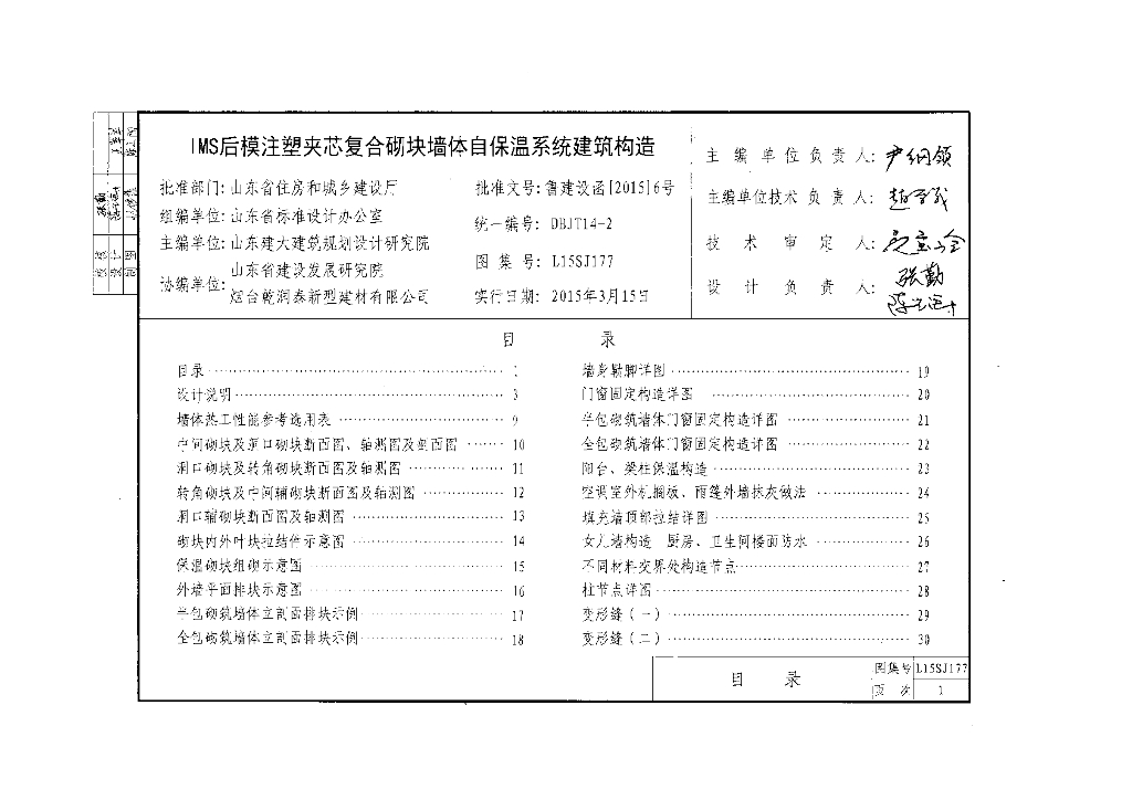 L15SJ177 山东省IMS后模注塑夹芯复合砌块墙体自保温系统建筑构造图集