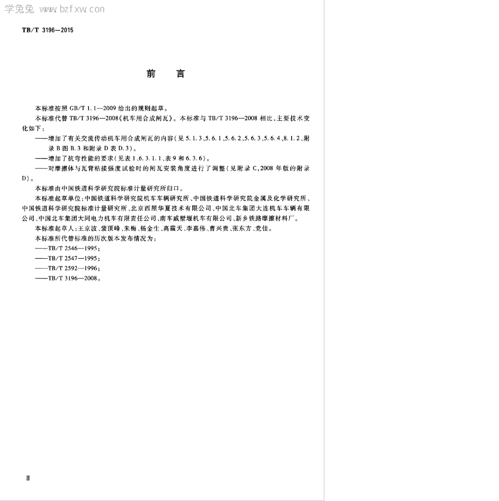 铁科院机辆所、铁科院金化所、标准所、北京西屋华夏、大连机辆公司、同车公司、戚墅堰公司、新乡铁路摩擦材料厂