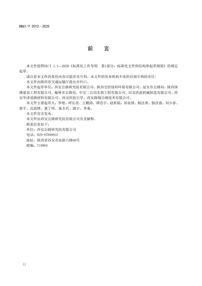 西安公路研究院有限公司、陕西交控绿科环保有限公司、延安市公路局、陕西国琳建设工程有限公司、榆林市公路局、中交二公局东萌工程有限公司、河北扶波机械制造有限公司、西安华泽道路材料有限公司、西安科技大学、西安路翔公路技术有限公司