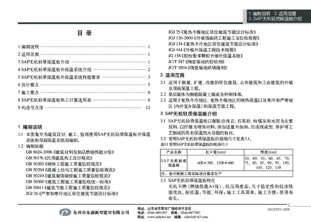 2012CPXY-J250 SAP无机轻质保温板保温系统图集