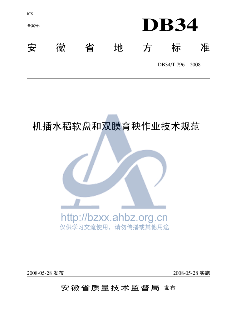 DB34/T 796-2008 机插水稻软盘和双膜育秧作业技术规范