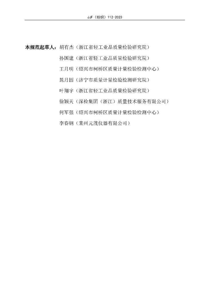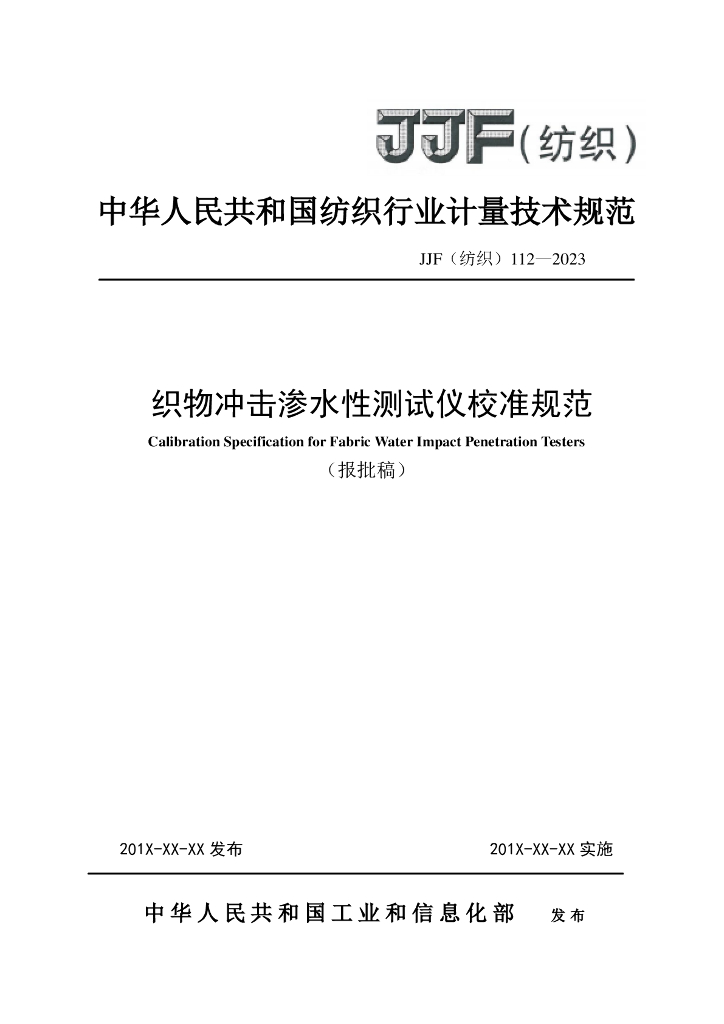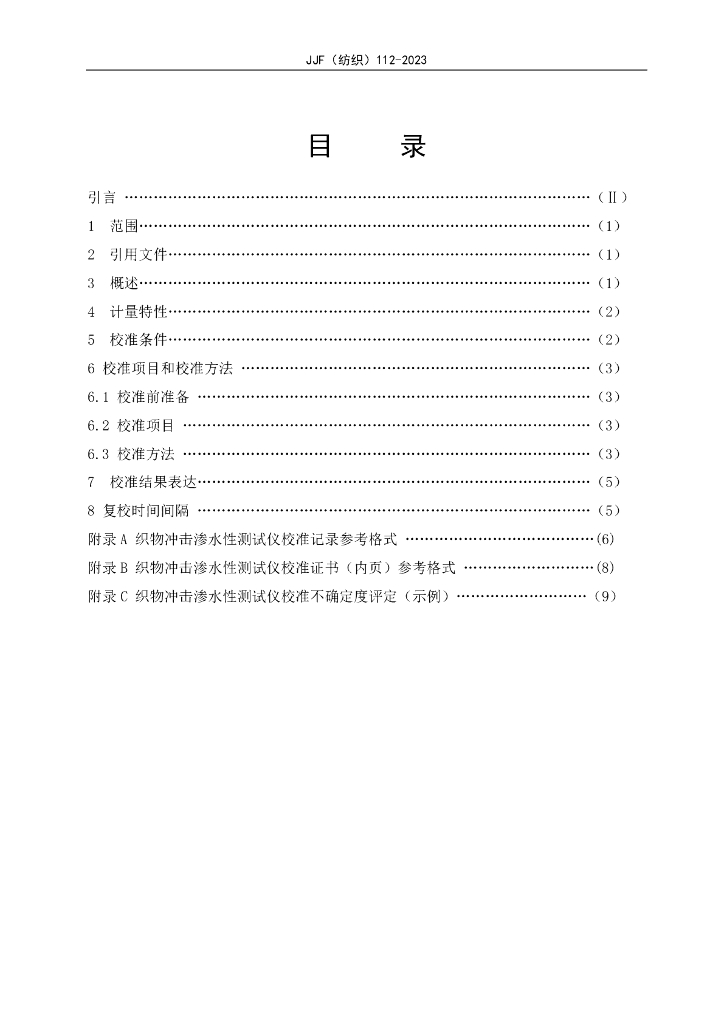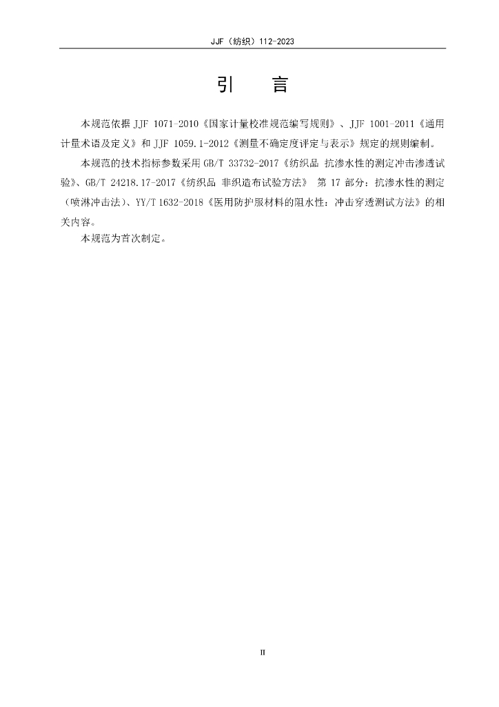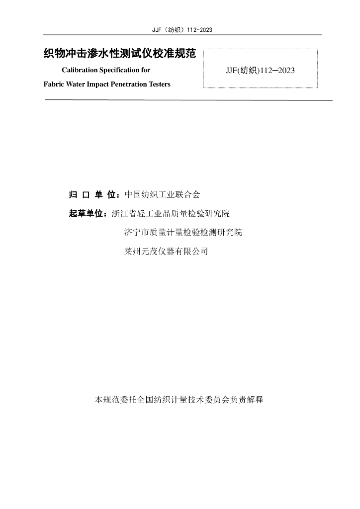 JJF(纺织)112-2023 织物冲击渗水性测试仪校准规范(报批稿)