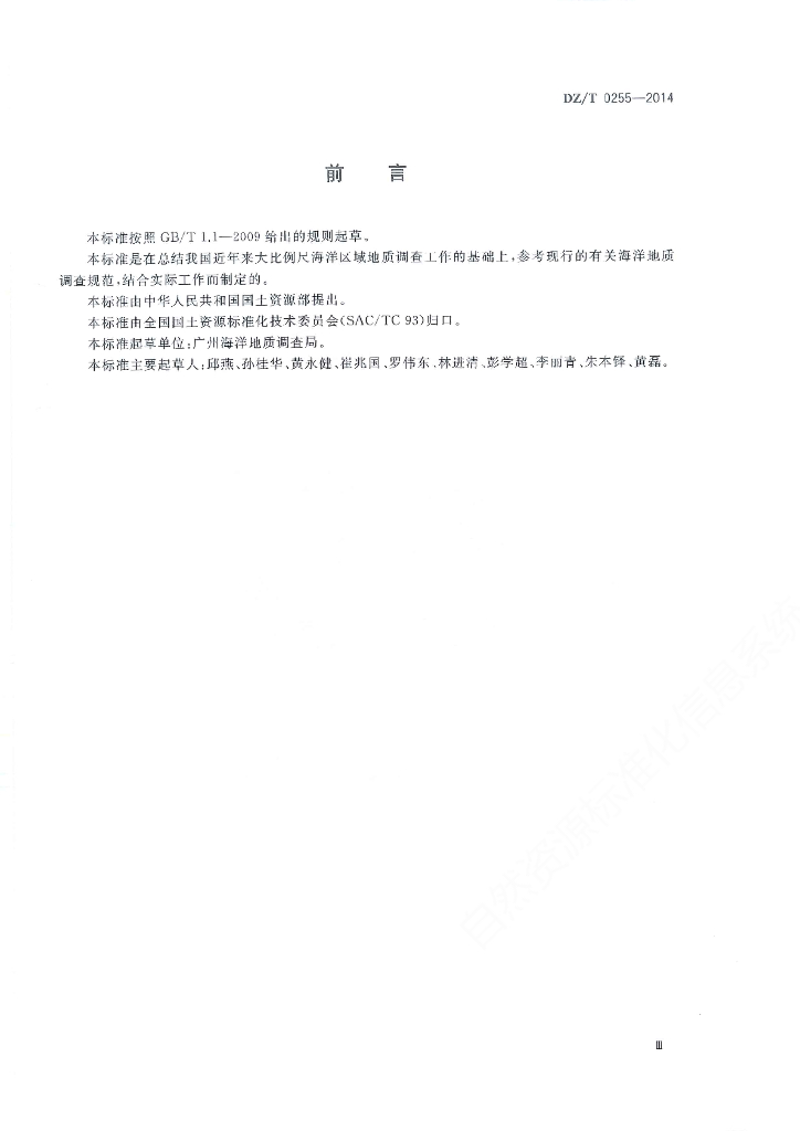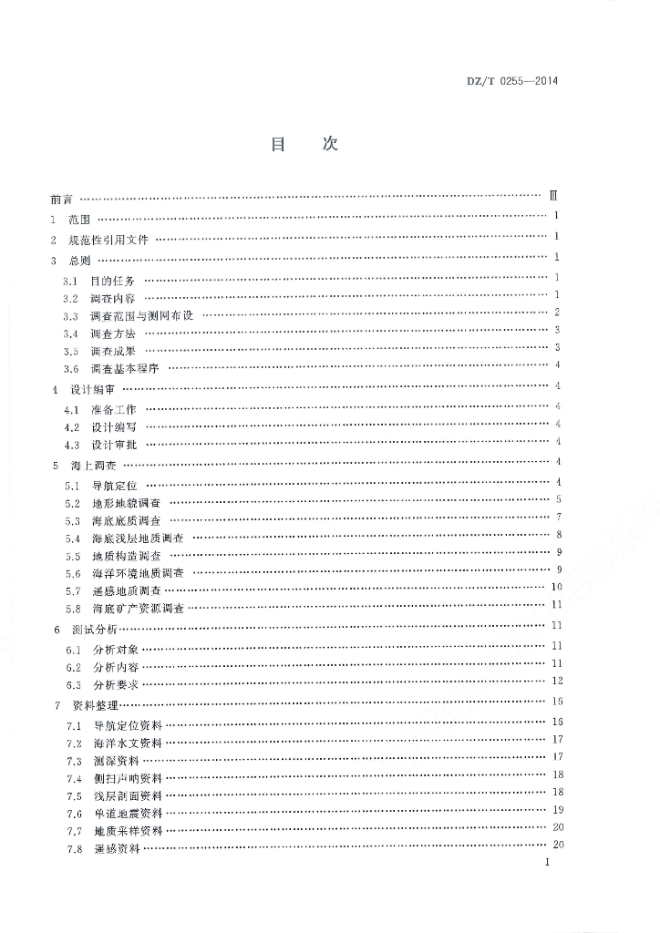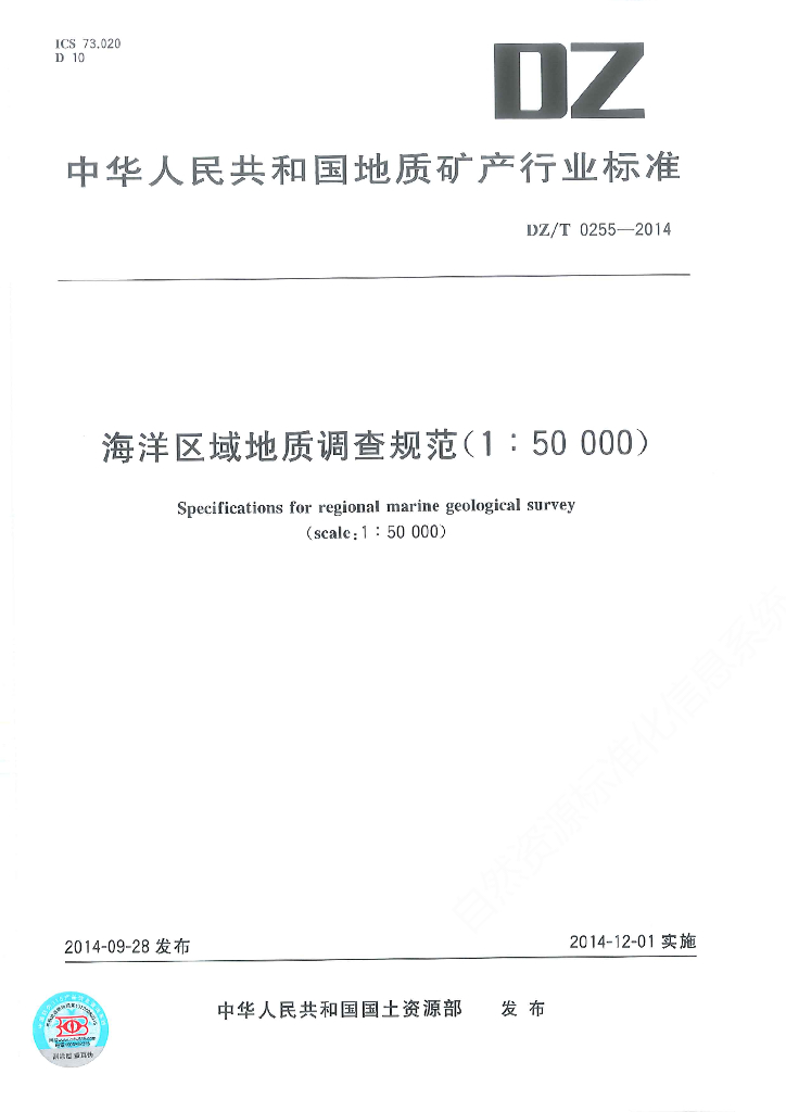 DZ/T 0255-2014 海洋区域地质调查规范(1∶50 000)