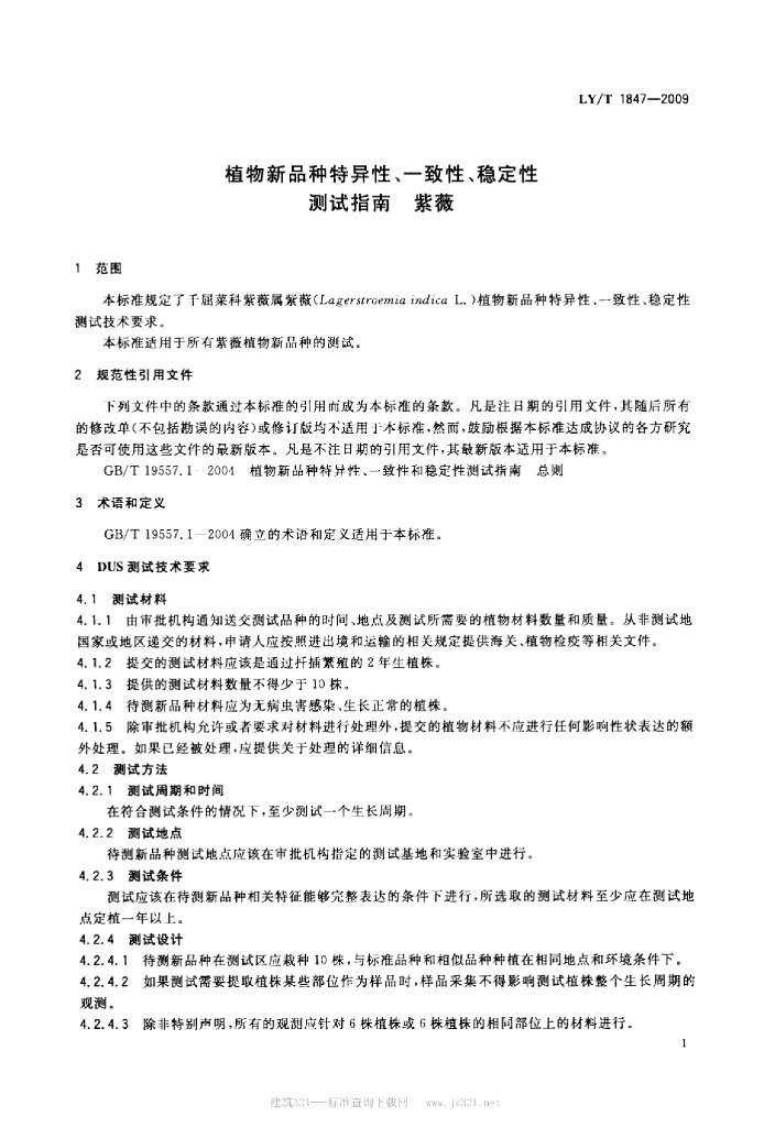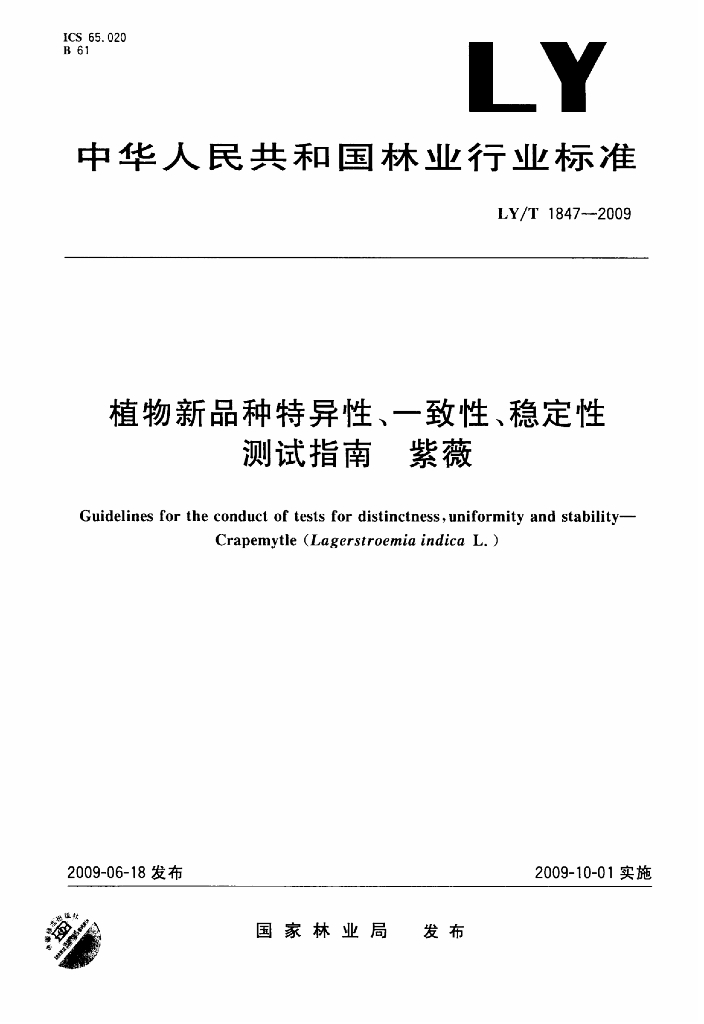 LY/T 1847-2009 植物新品种特异性、一致性、稳定性测试指南 紫薇