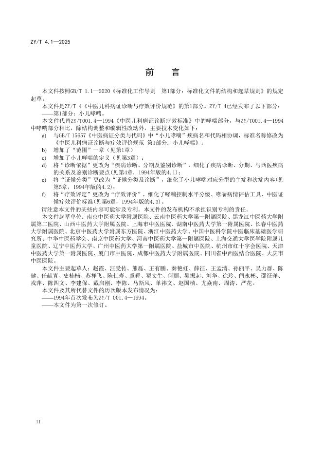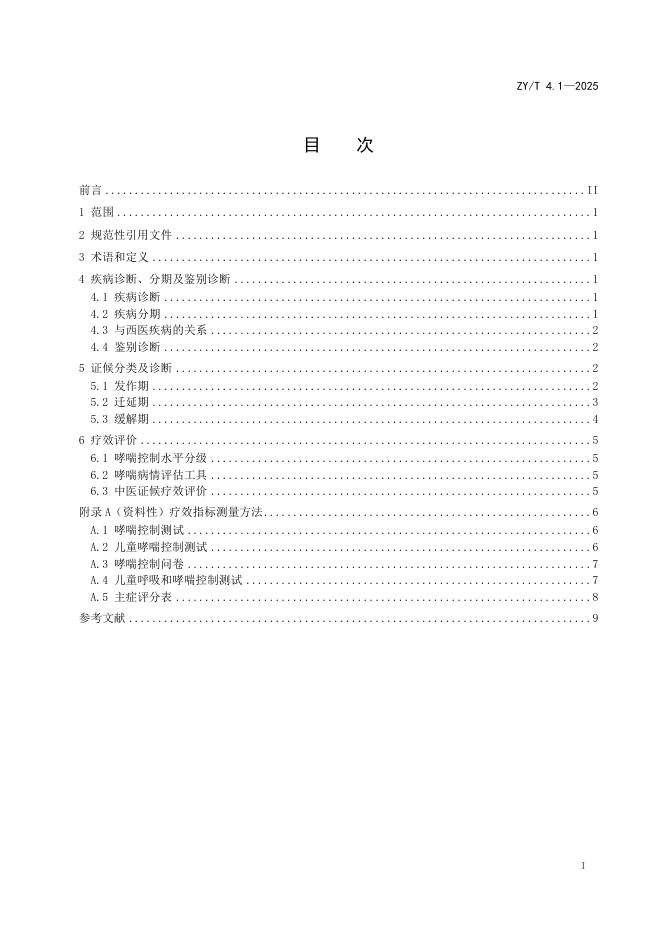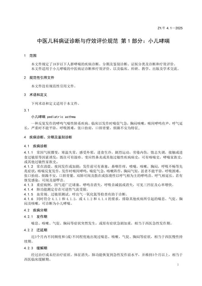 ZY/T 4.1-2025 中医儿科病证诊断与疗效评价规范 第1部分:小儿哮喘