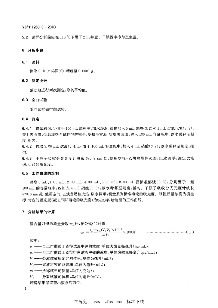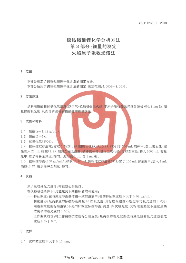 YS/T 1263.3-2018 镍钴铝酸锂化学分析方法 第3部分:锂量的测定 火焰原子吸收光谱法