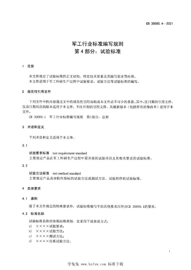 CB 30000.4-2021 军工行业标准编写规则 第4部分:试验标准