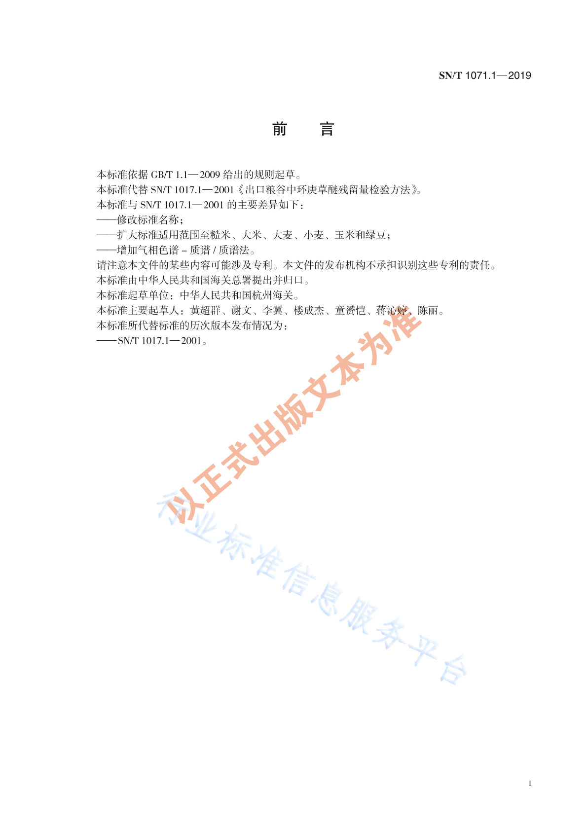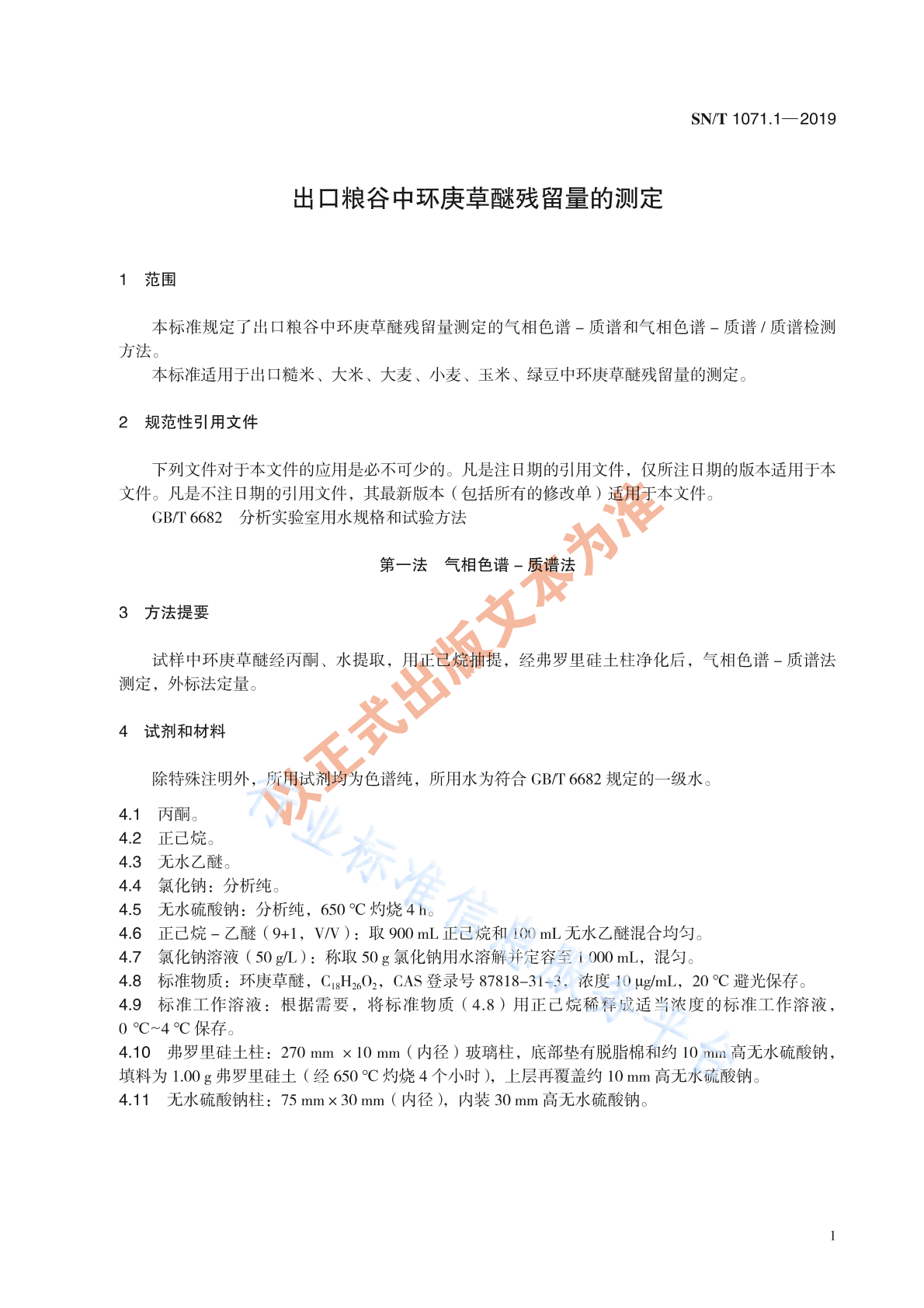 SN/T 1071.1-2019 出口粮谷中环庚草醚残留量的测定