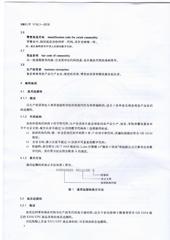 DB31/T 1110.1-2018 食品和食用农产品信息追溯 第1部分:编码规则