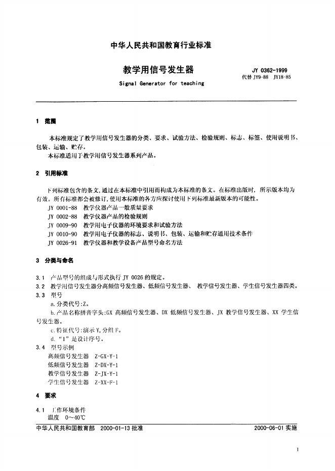 JY/T 0362-1999 教学用信号发生器