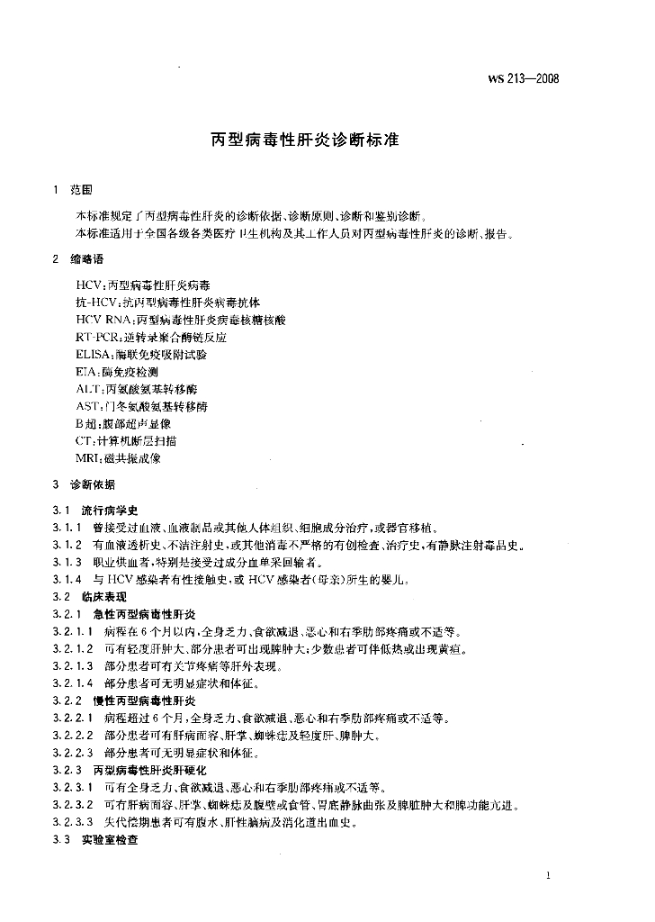 WS 213-2008 丙型病毒性肝炎诊断标准