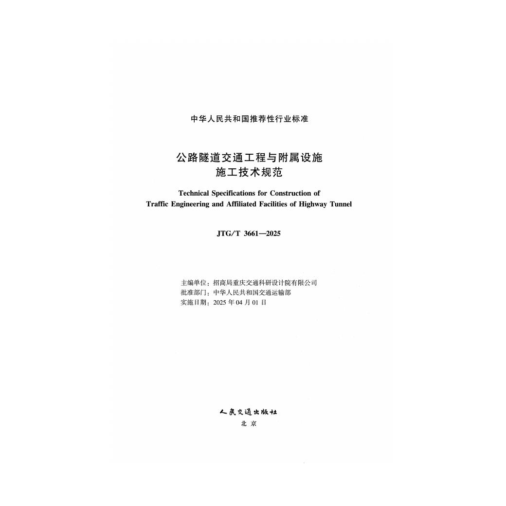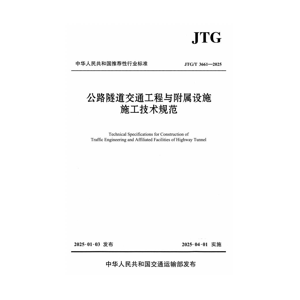 JTG/T 3661-2025 公路隧道交通工程与附属设施施工技术规范