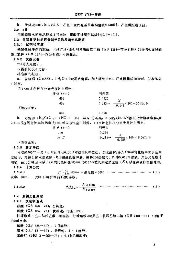 QB/T 3783-1999 食品添加剂 叶绿素铜钠盐(GB 3262-1982)