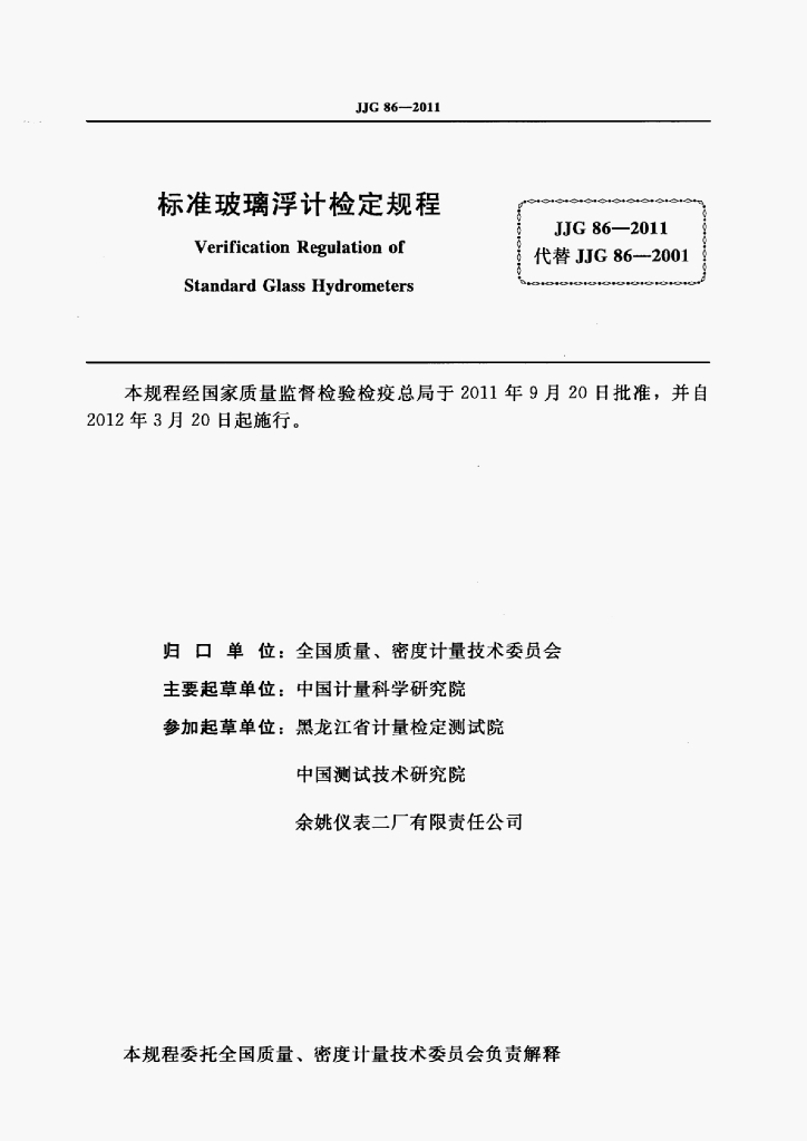 中国计量科学研究院、黑龙江省计量检定测试院、中国测试技术研究院、余姚仪表二厂有限责任公司