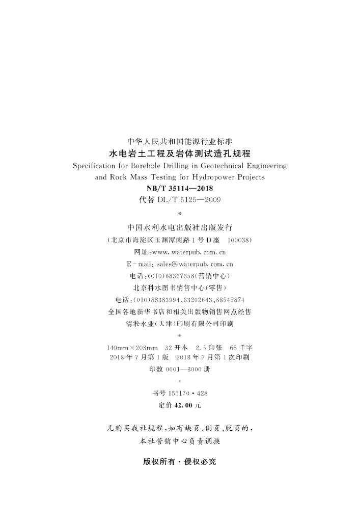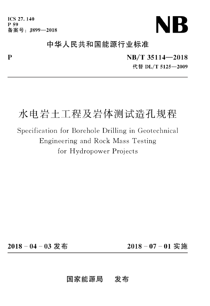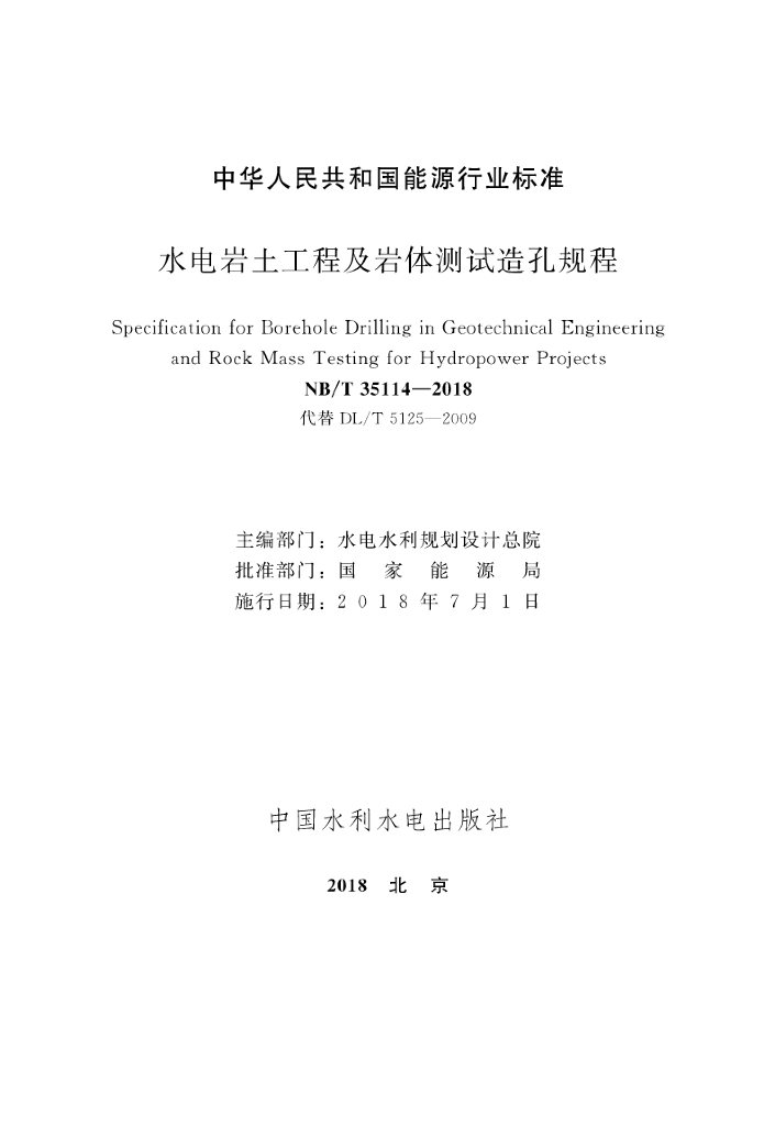 NB/T 35114-2018 水电岩土工程及岩体测试造孔规程