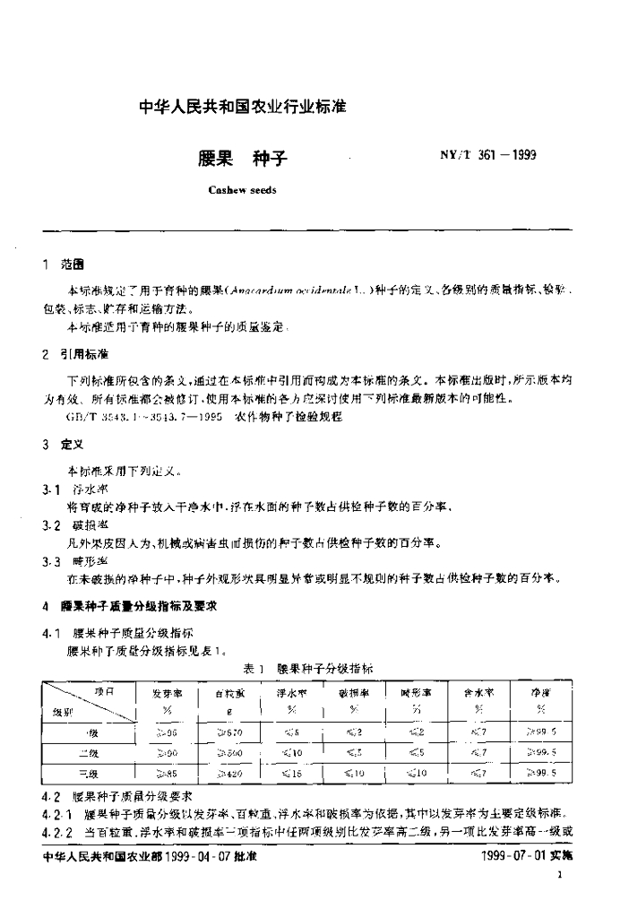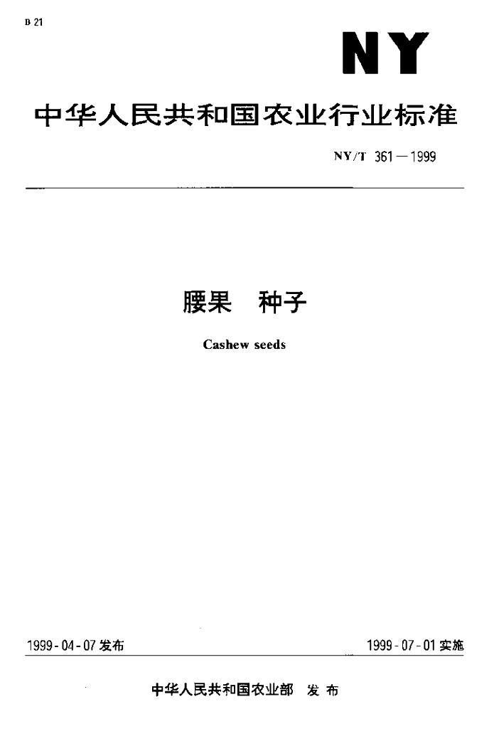 NY/T 361-1999 腰果 种子