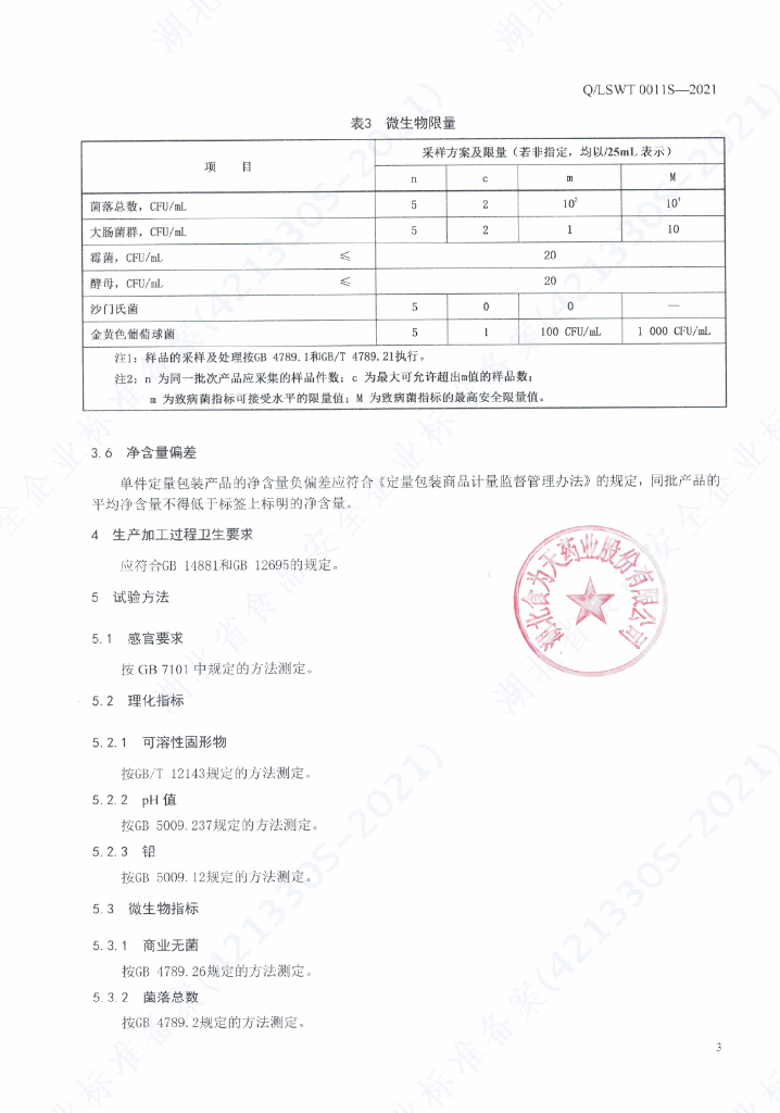 Q/LSWT 0011S-2021 鱼腥草饮料