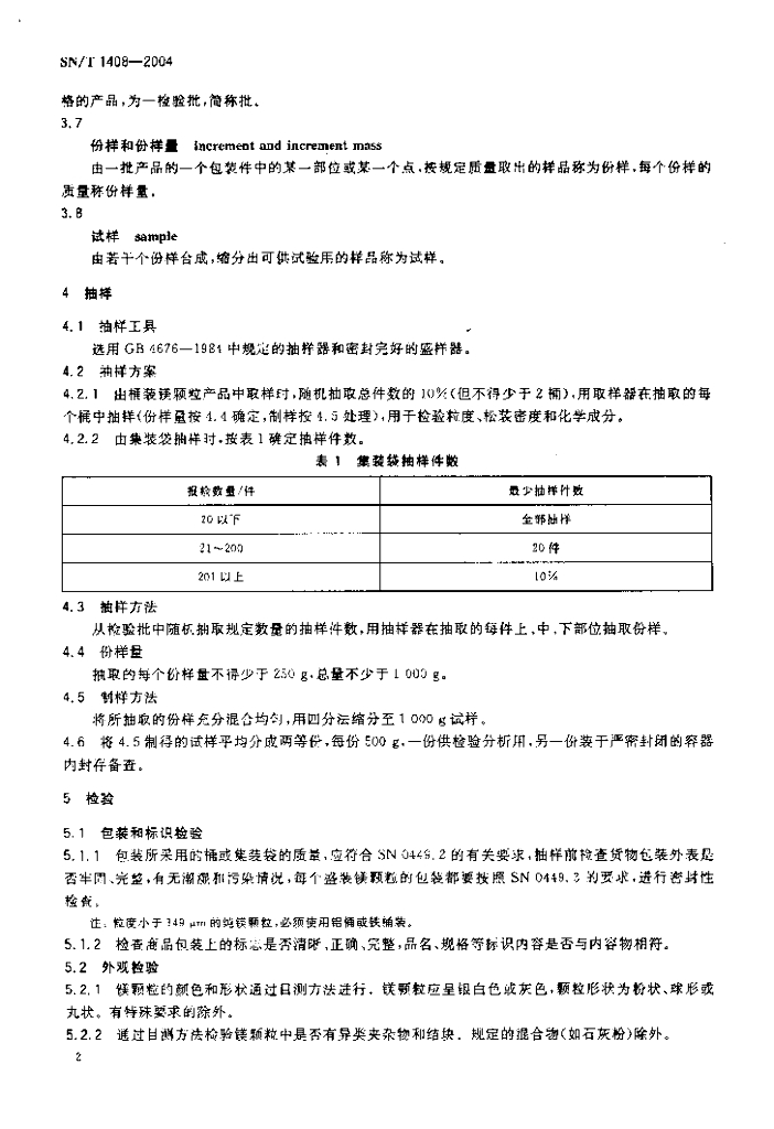 SN/T 1408-2004 出口金属镁颗粒检验规程
