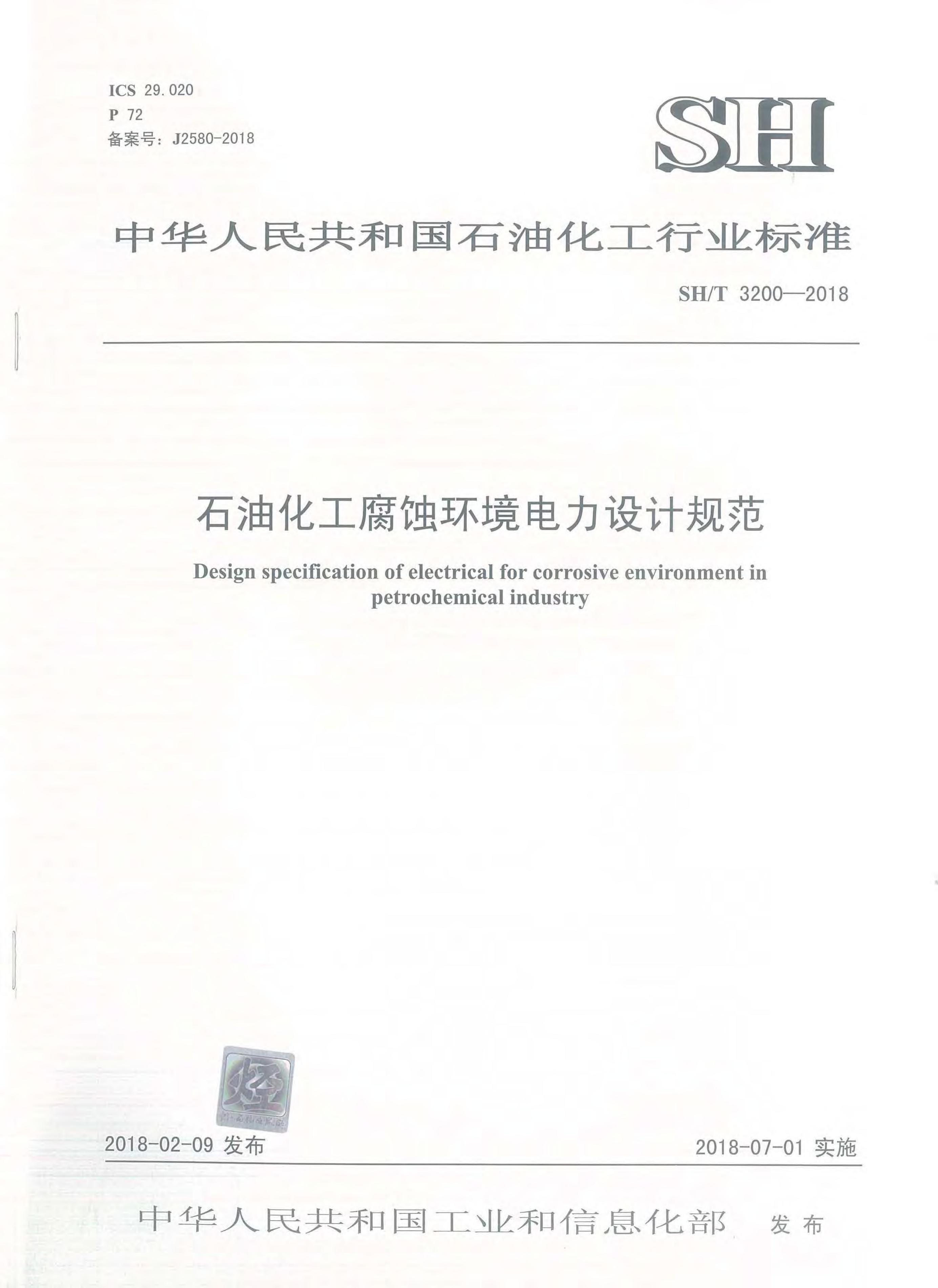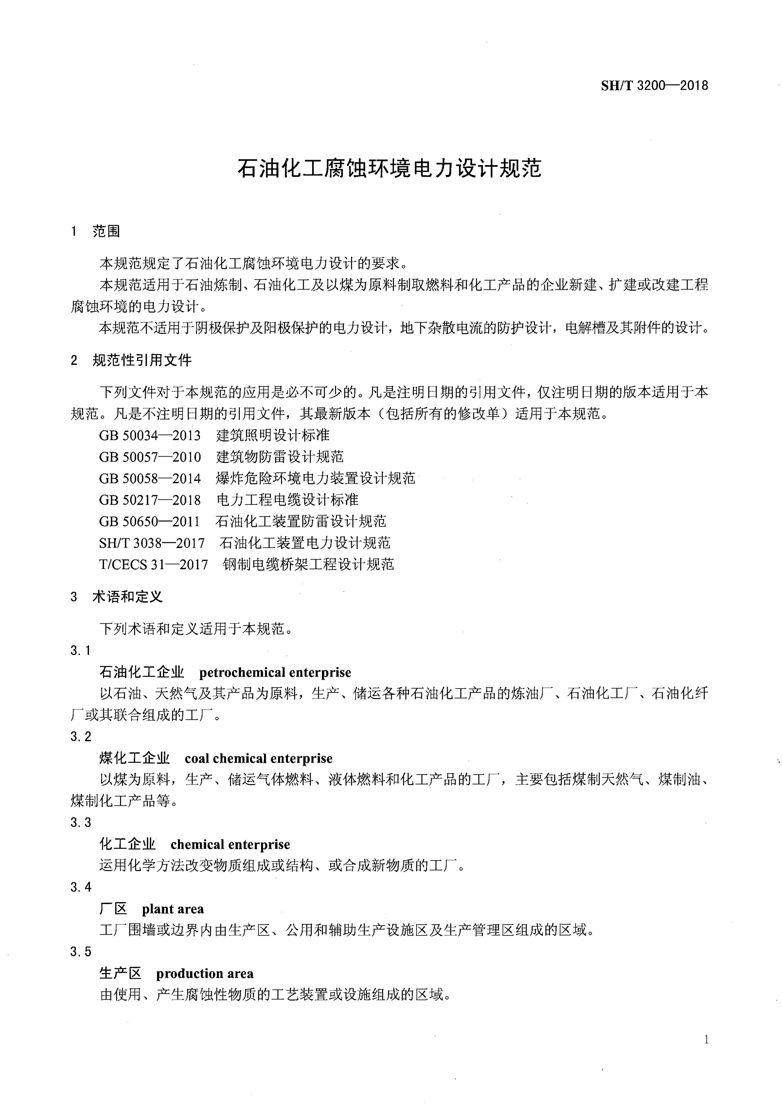 SH/T 3200-2018 石油化工腐蚀环境电力设计规范