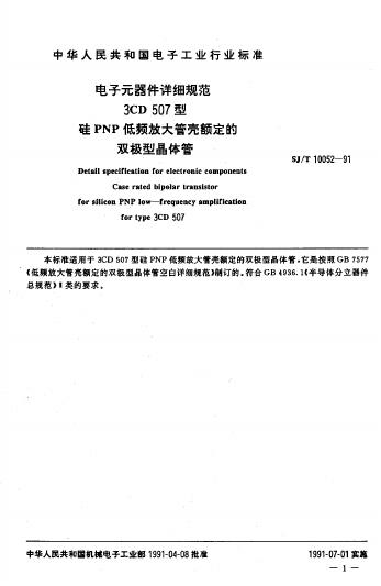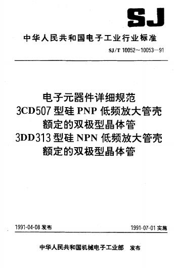 SJ/T 10052-1991 3CD507型硅PNP低频放大管壳额定的双极型晶体管