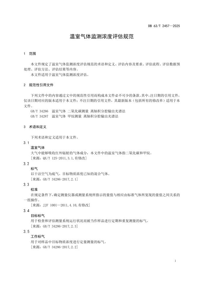 DB63/T 2457-2025 温室气体监测浓度评估规范