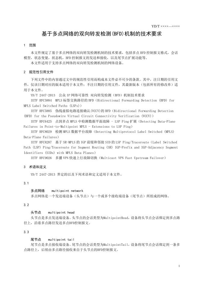 YD/T 6100-2024 基于多点网络的双向转发检测(BFD)机制的技术要求
