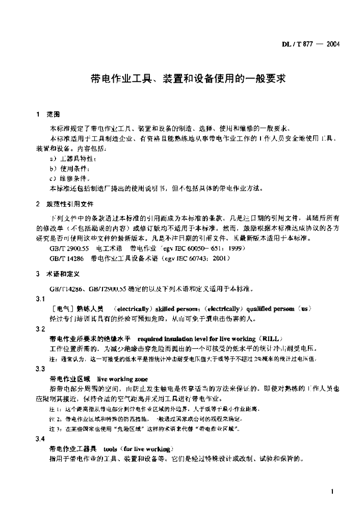 DL/T 877-2004 带电作业用工具、装置和设备使用的一般要求