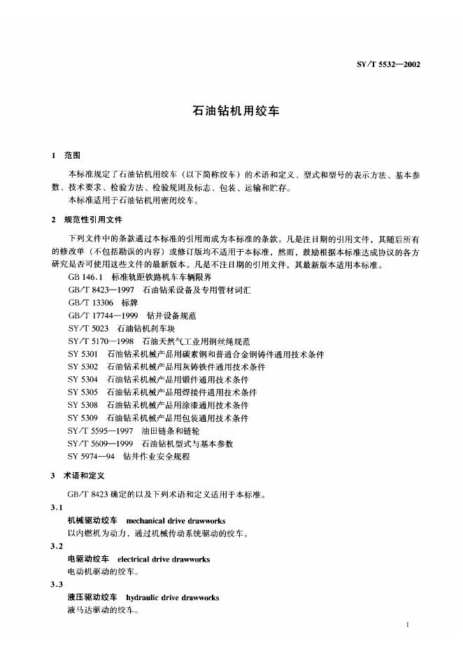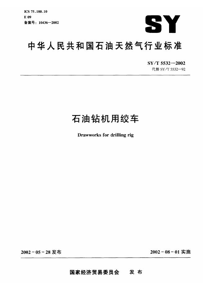 SY/T 5532-1992 石油钻机用绞车