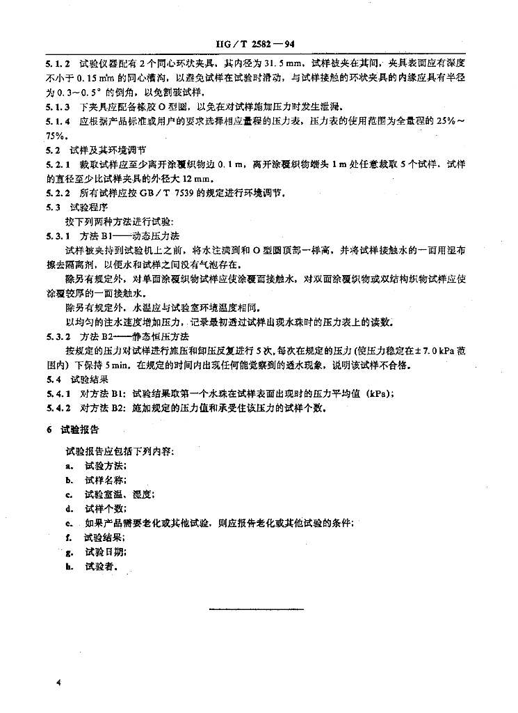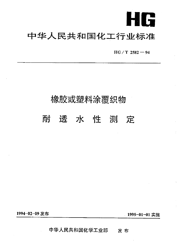 HG/T 2582-1994 橡胶或塑料涂覆织物耐透水性测定