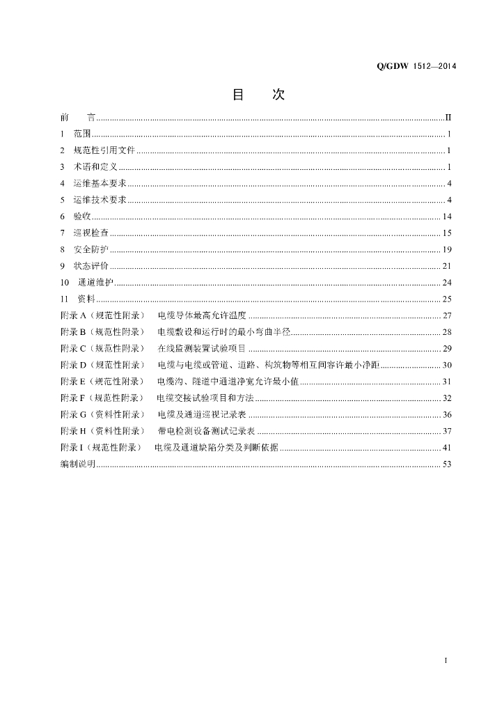 Q/GDW 1512-2014 电力电缆及通道运维规程