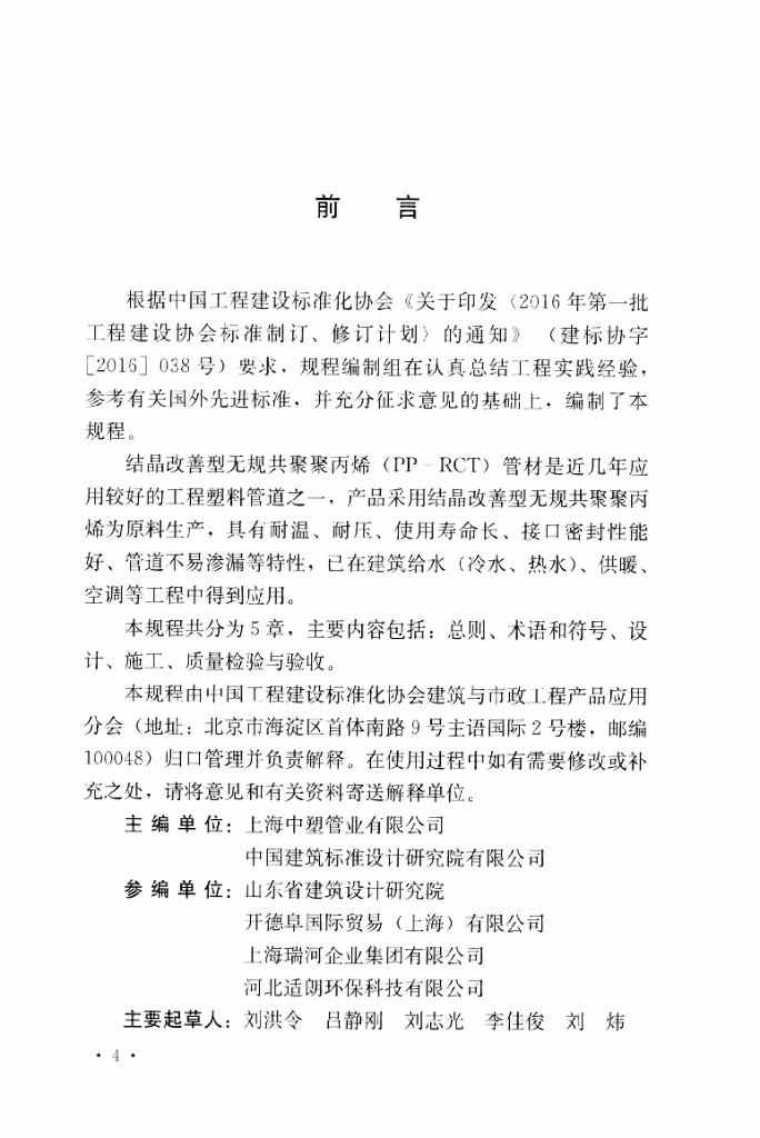 中国建筑标准设计研究院有限公司 上海中塑管业有限公司 山东省建筑设计研究院 开德阜国际贸易(上海)有限公司 上海瑞河企业集团有限公司 河北适郎环保科技有限公司