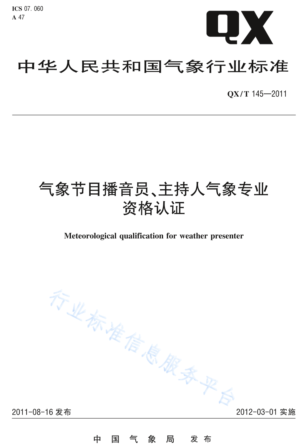 - 主管部门:全国气象防灾减灾标准化技术委员会