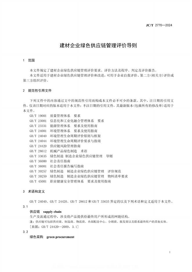 JC/T 2770-2024 建材企业绿色供应链管理评价导则