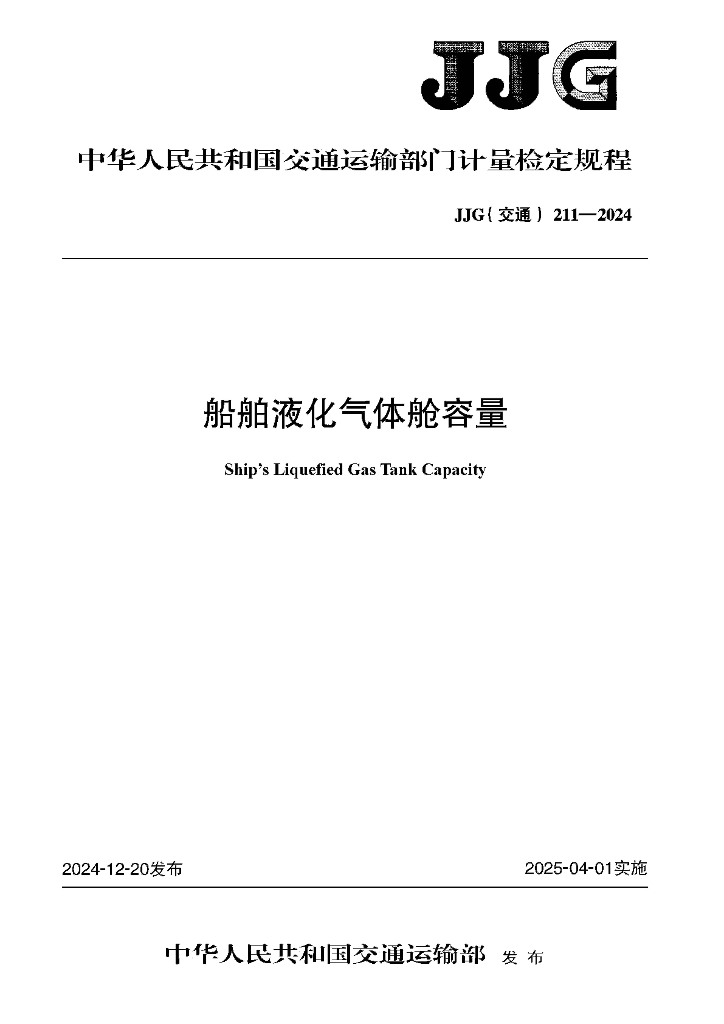 JJG(交通)211-2024 船舶液化气体舱容量