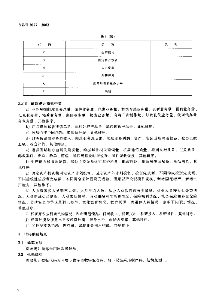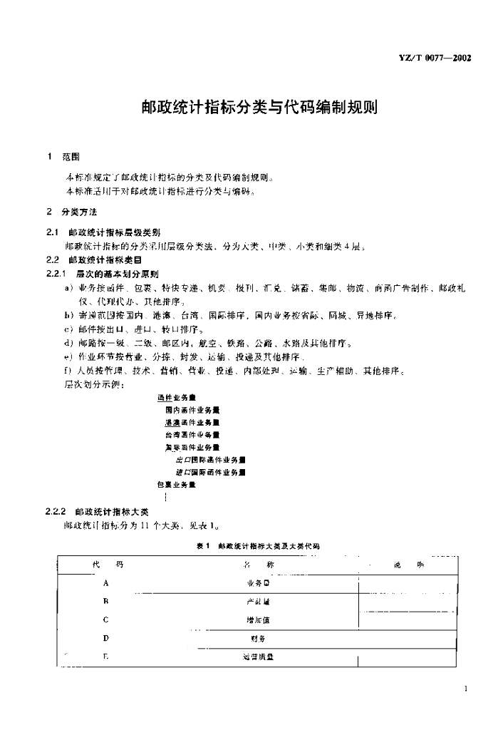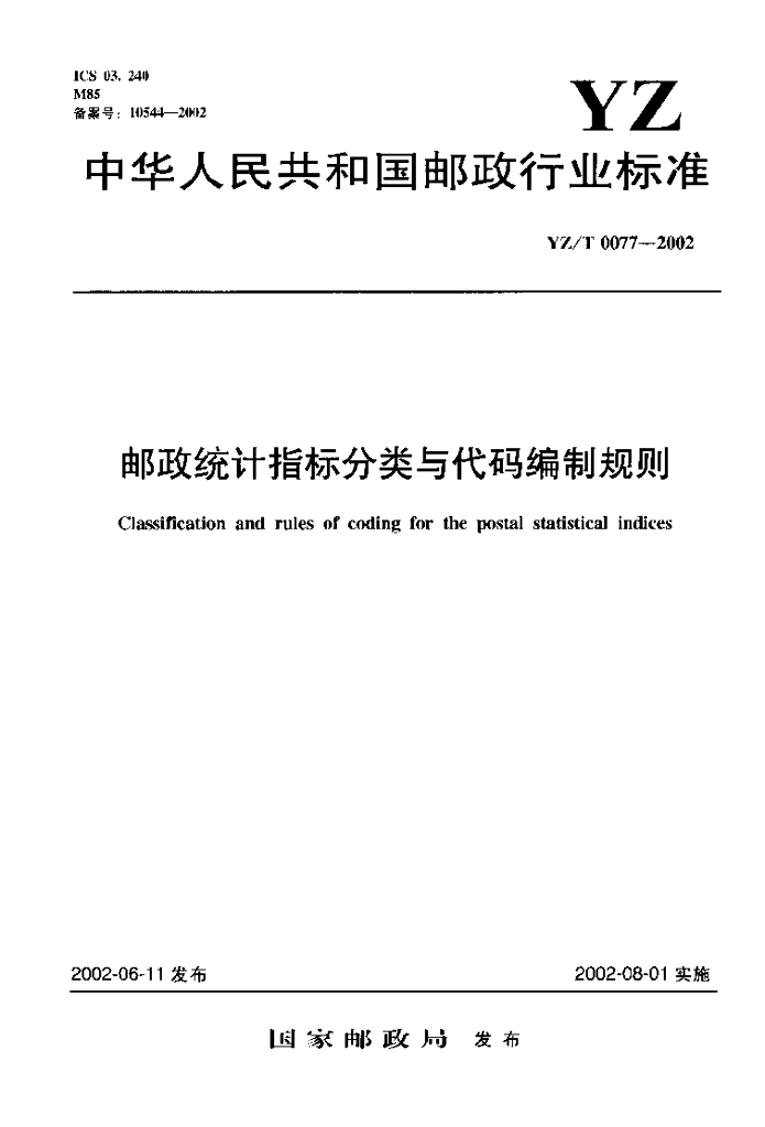 YZ/T 0077-2002 邮政统计指标分类与代码编制规则