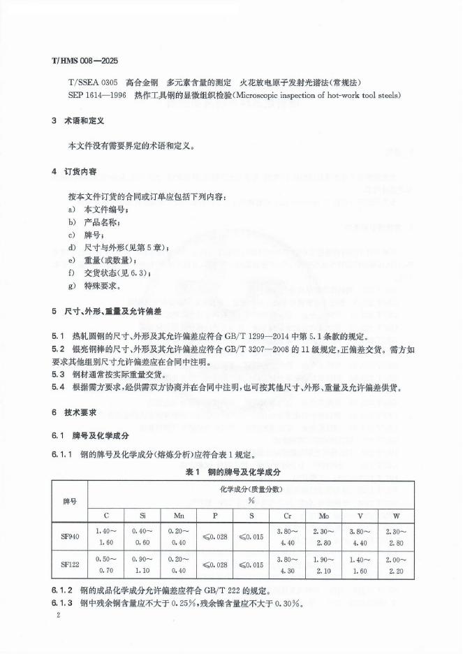 T/HMS 008-2025 喷射成形精冲模具钢圆钢