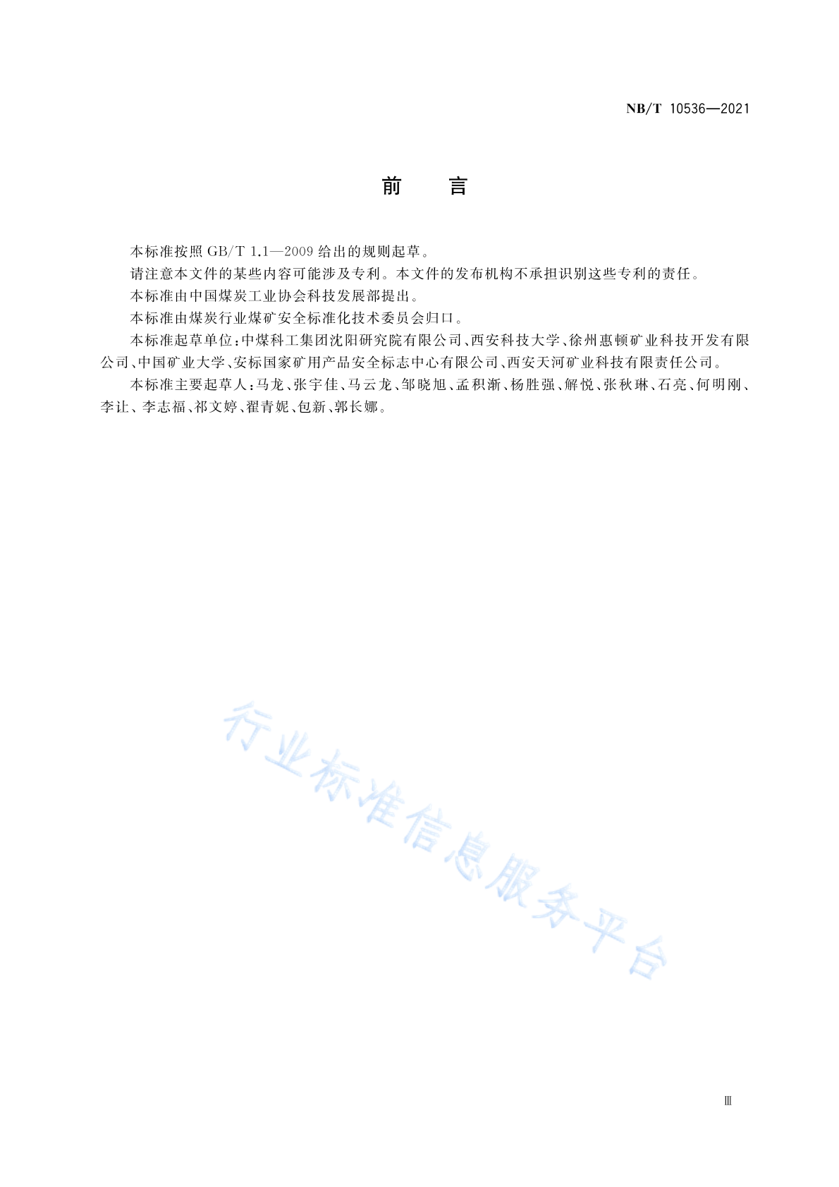 中煤科工集团沈阳研究院有限公司、西安科技大学、徐州惠顿矿业科技开发有限公司、中国矿业大学、安标国家矿用产品安全标志中心有限公司、西安天河矿业科技有限责任公司
