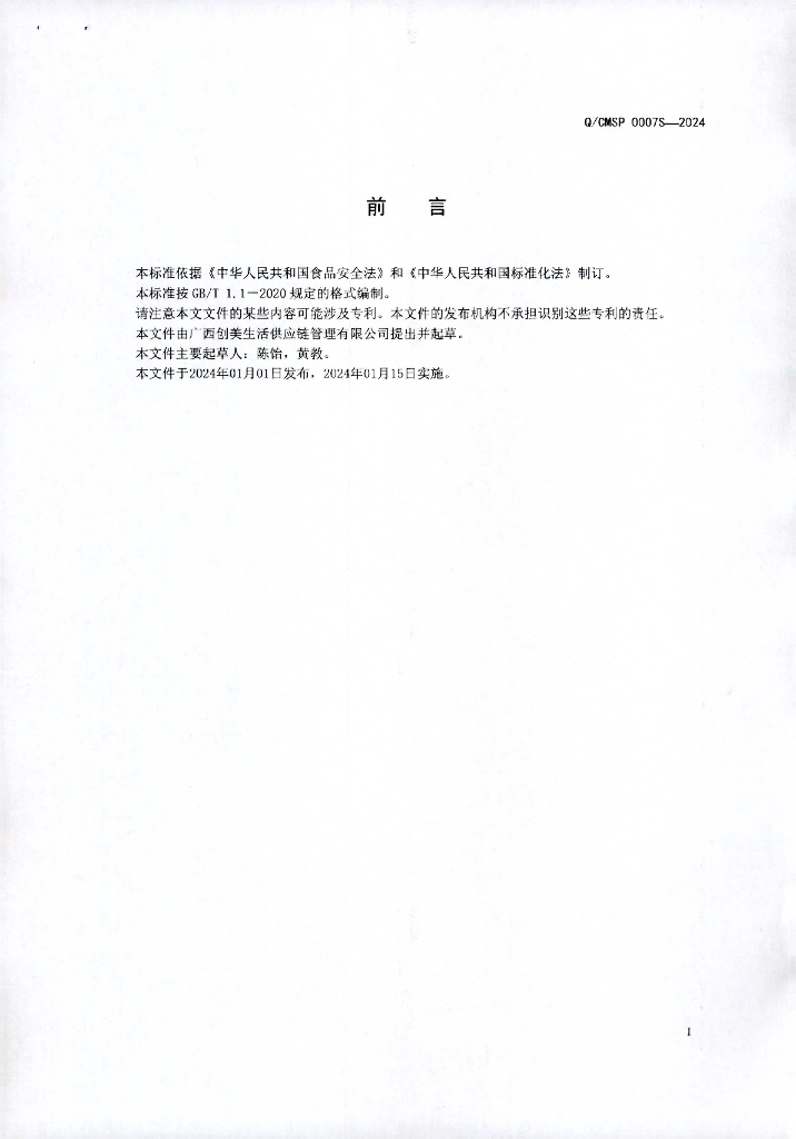 Q/CMSP 0007S-2024 冷冻预制调理肉类制品(非即食)
