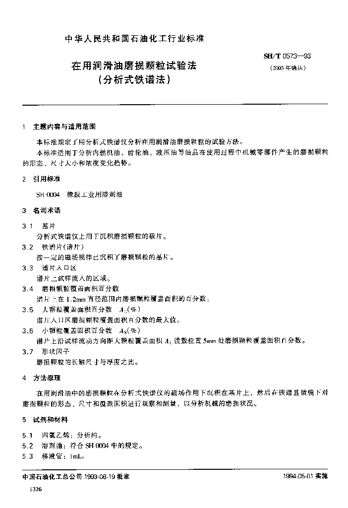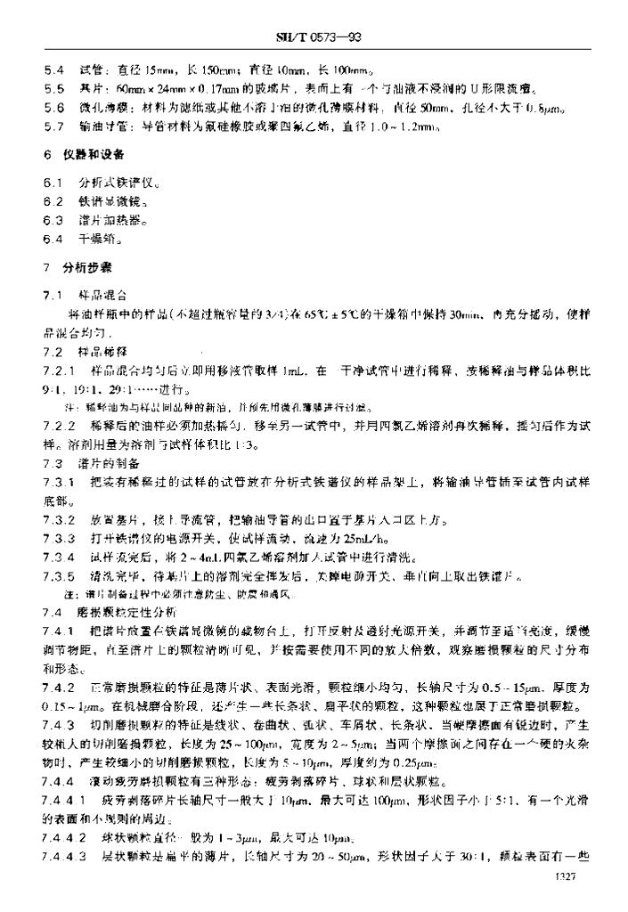 SH/T 0573-1993 在用润滑油磨损颗粒试验法(分析式铁谱法)