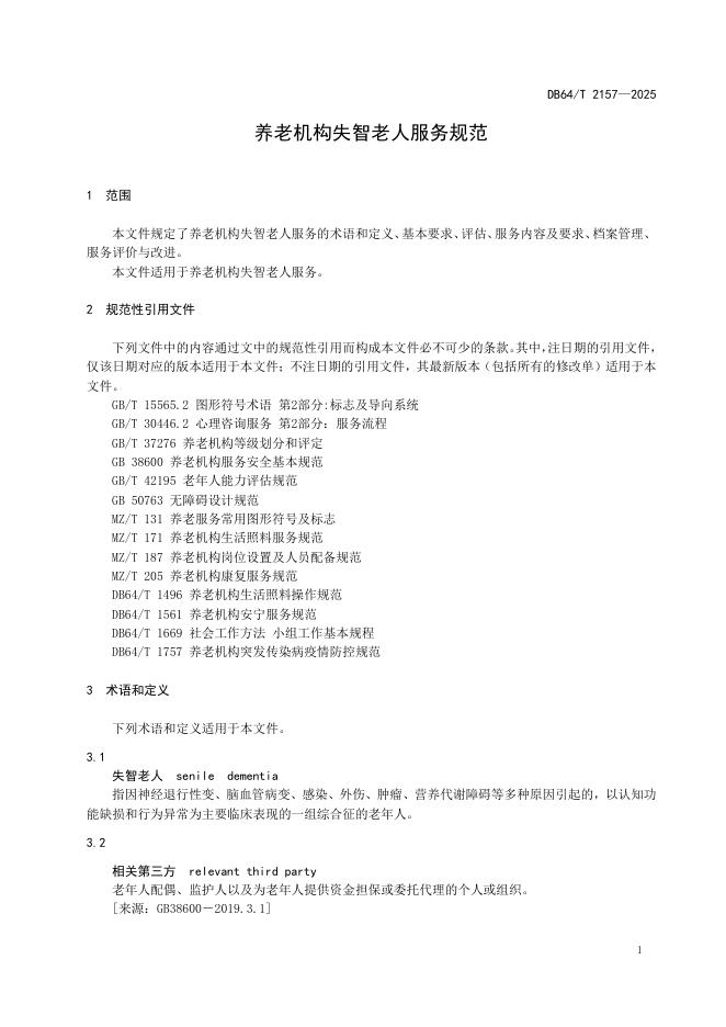 DB64/T 2157-2025 养老机构失智老人服务规范