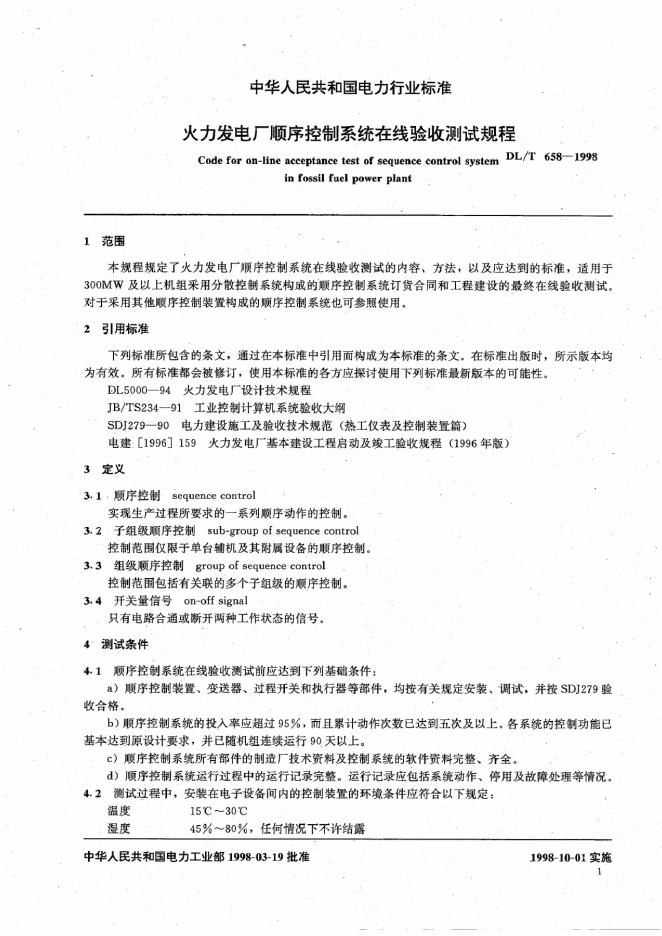 DL/T 658-1998 火力发电厂顺序控制系统在线验收测试规程