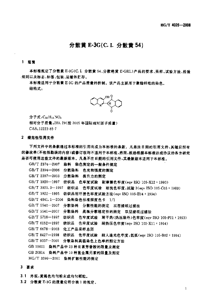 HG/T 4026-2008 分散黄 E-3G(C.I. 分散黄 54)