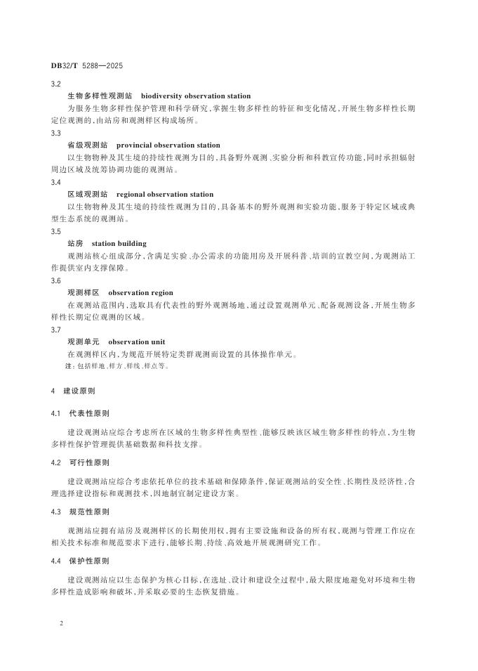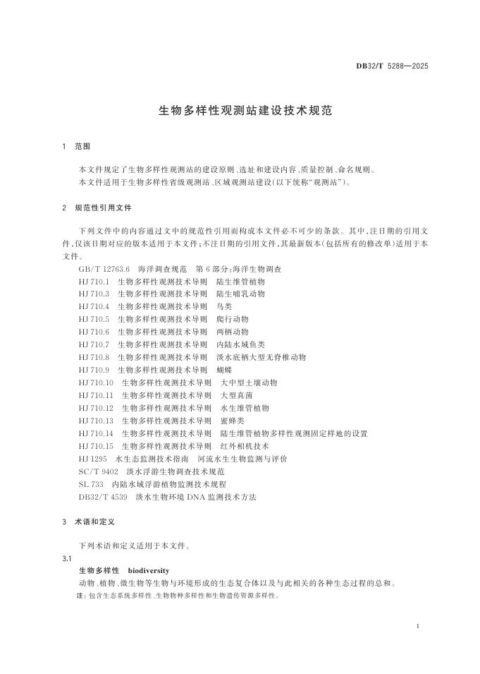 DB32/T 5288-2025 生物多样性观测站建设技术规范