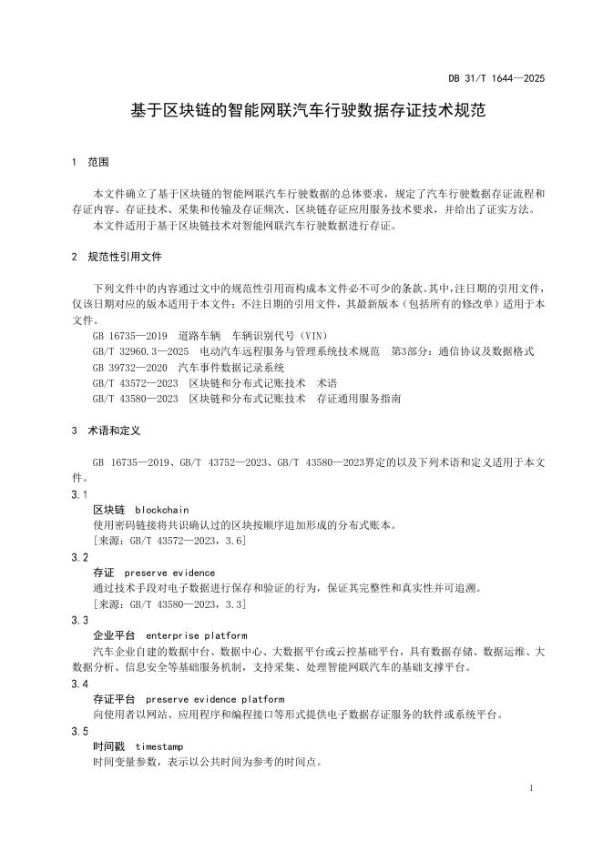 DB31/T 1644-2025 基于区块链的智能网联汽车行驶数据存证技术规范
