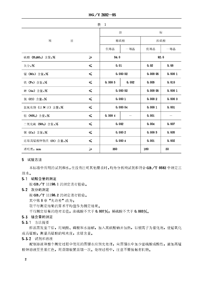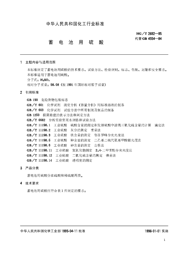 HG/T 2692-1995 蓄电池用硫酸