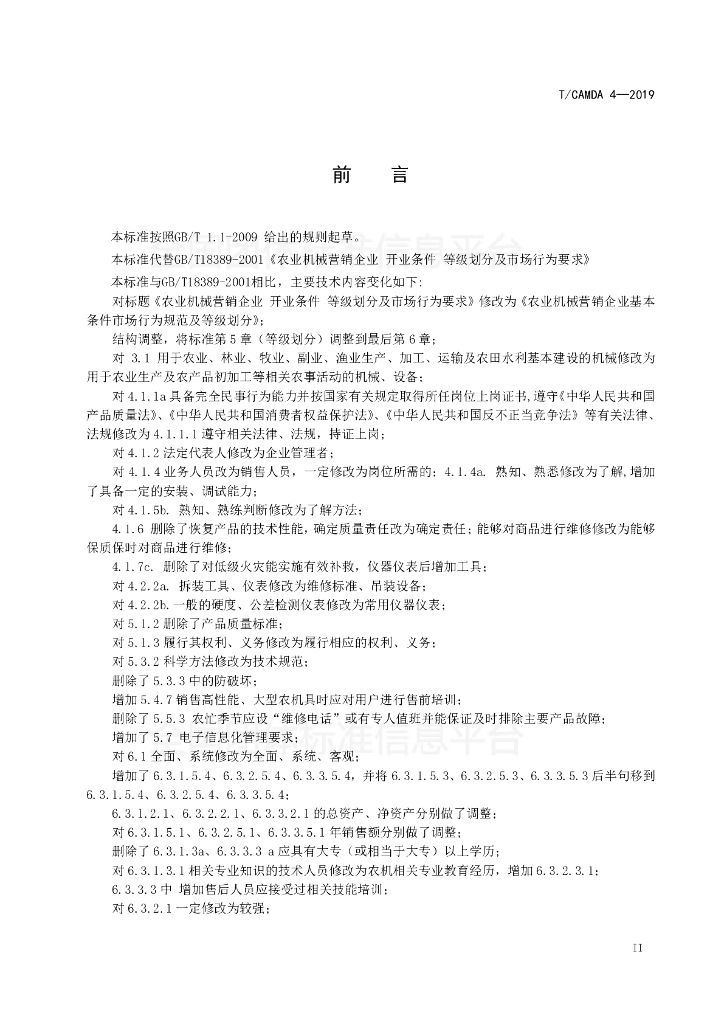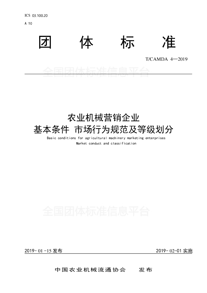 T/CAMDA 4-2019 农业机械营销企业 基本条件 市场行为规范及等级划分