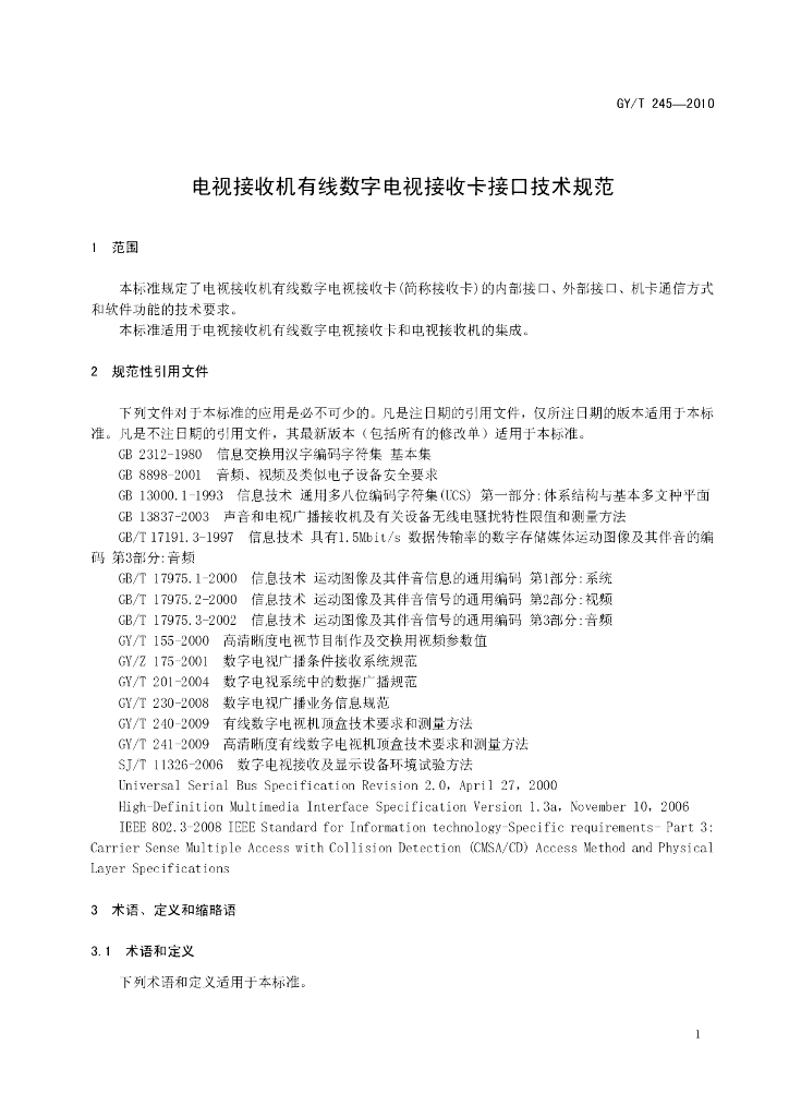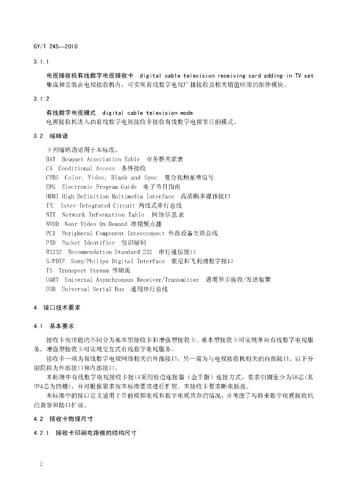 GY/T 245-2010 电视接收机有线数字电视接收卡接口技术规范