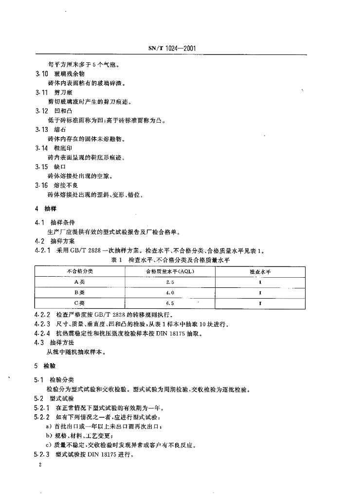 SN/T 1024-2001 出口空心玻璃砖检验规程
