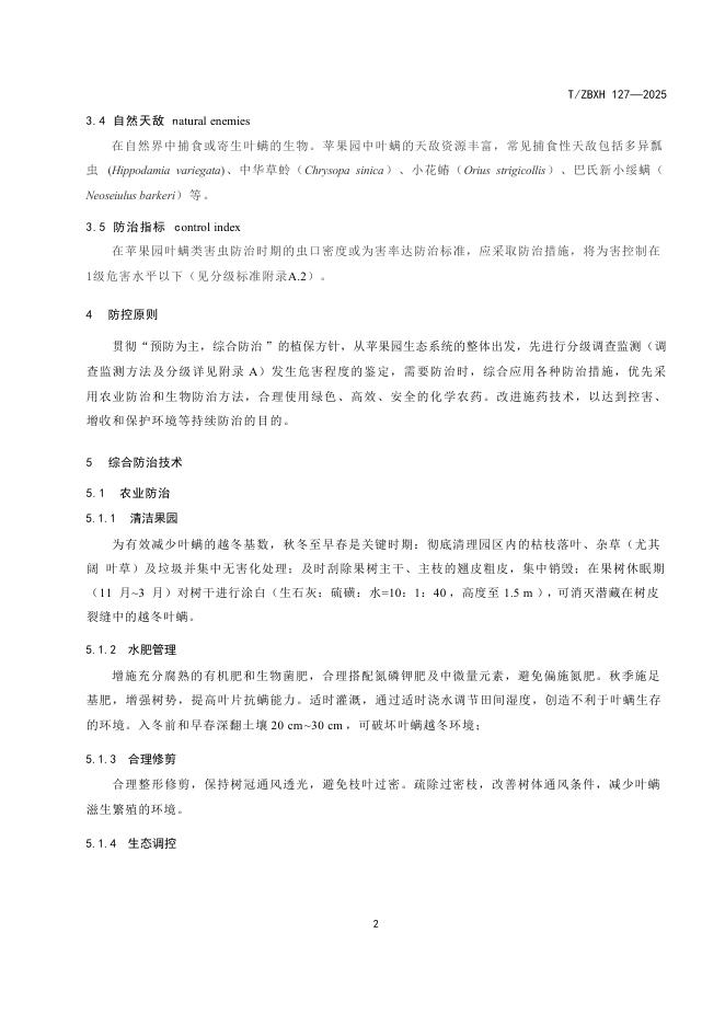 T/ZBXH 127-2025 苹果园叶螨类害虫监测和绿色防控技术规程