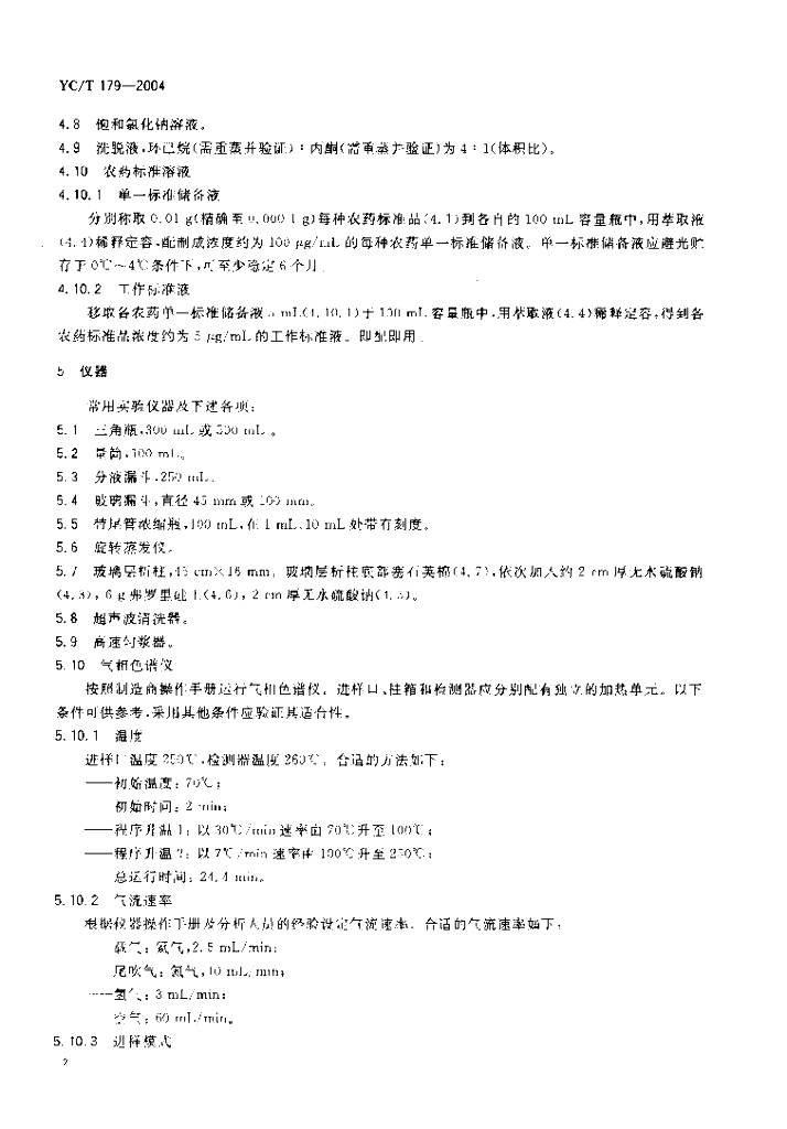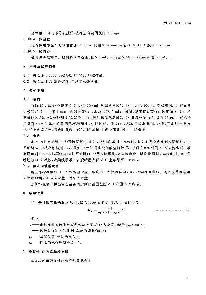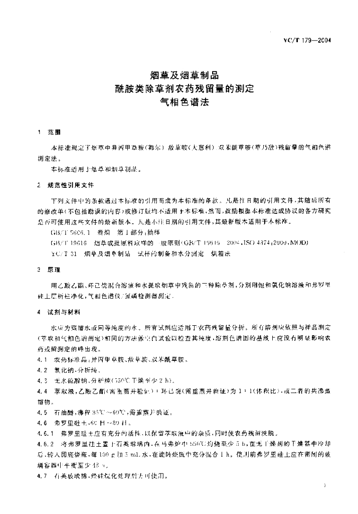 YC/T 179-2004 烟草及烟草制品 酰胺类除草剂农药残留量的测定 气相色谱法